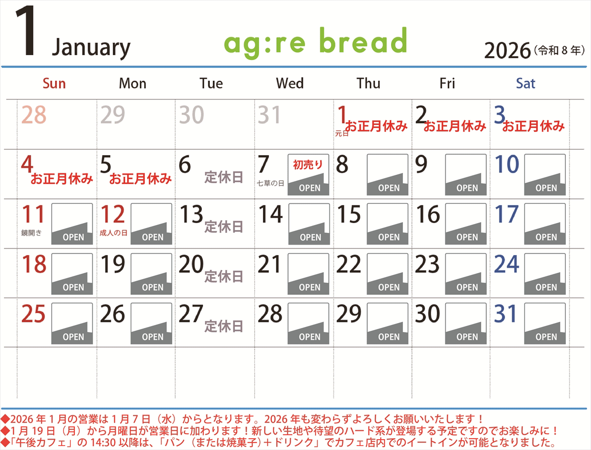 こんにちは、アグリブレッドカフェです! 昨年中はお世話になりました。 今年も引き続き、よろしくお願いいたします! ...